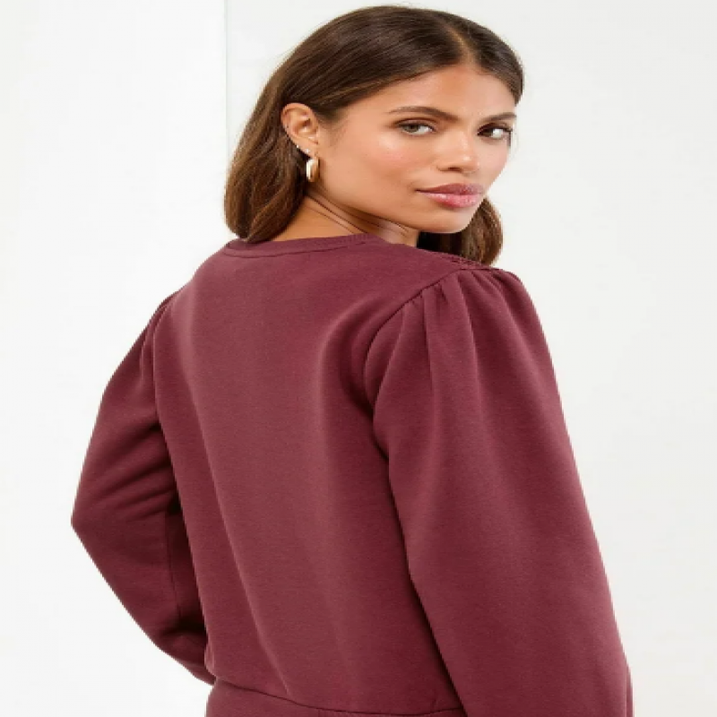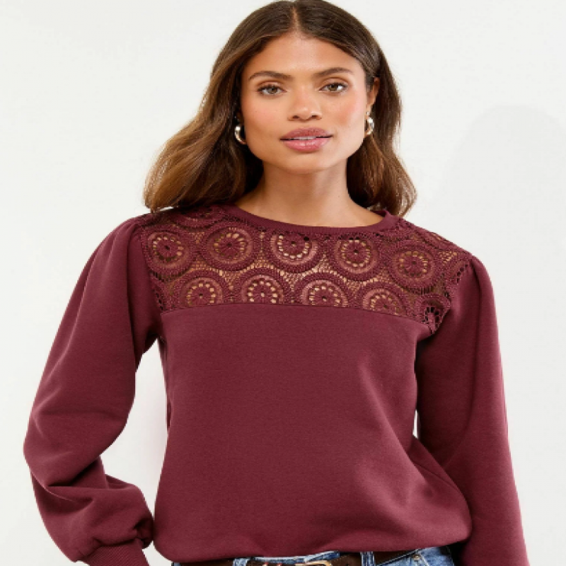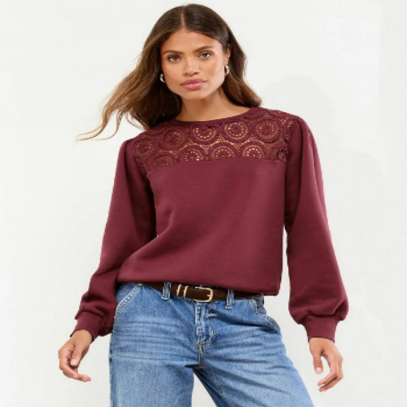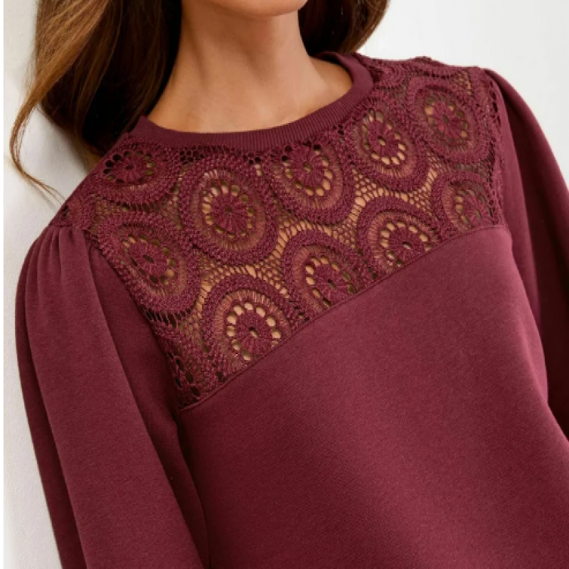 Coupe classique - Col rond - Sweat-shirt - Crochet couleur vin