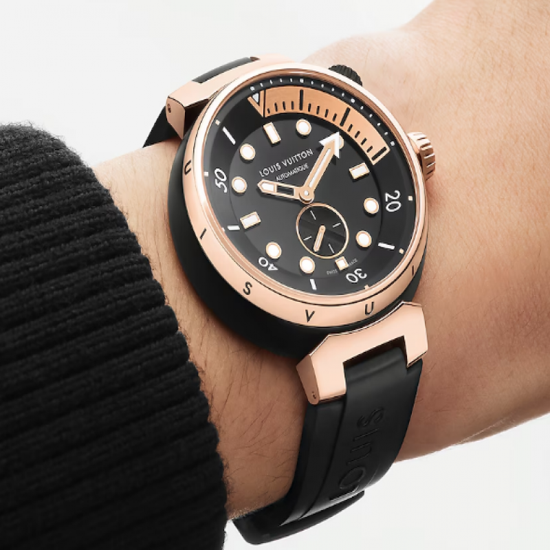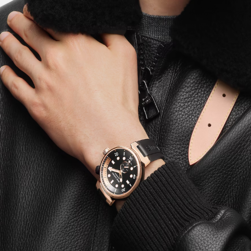 Le modèle Black Blaze apporte une touche sophistiquée à la ligne Tambour Street Diver. L'or rose poli contraste avec un esprit sportif, créant un effet moderne et unique. Nouvelle version polyvalente de la silhouette iconique de Tambour, elle allie les caractéristiques traditionnelles des montres de plongée à un design créatif et original.
